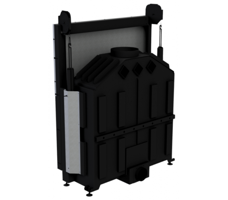 The heat resistance of such a large door is ensured by a special solid steel profile. This is an exclusive profile with a special cross-section, which we developed with a view to using it in large fireboxes.