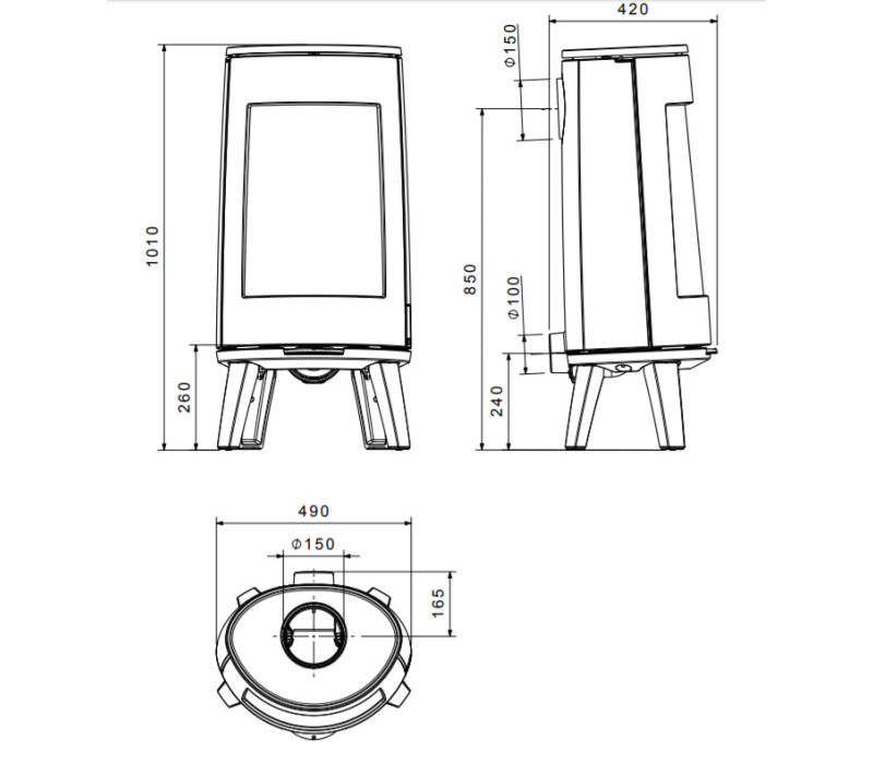 зольником, системой холодной ручки, удобным подводом дымохода, ножками с регулируемой высотой.