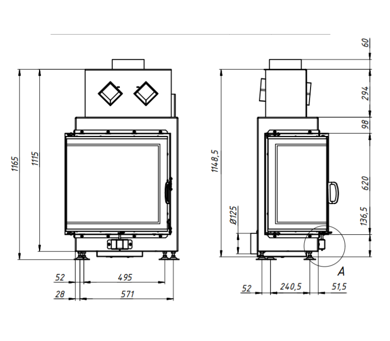 The fireplace insert is equipped with fire-resistant ceramic glass from the German manufacturer ROBAX®, which is the industry leader.