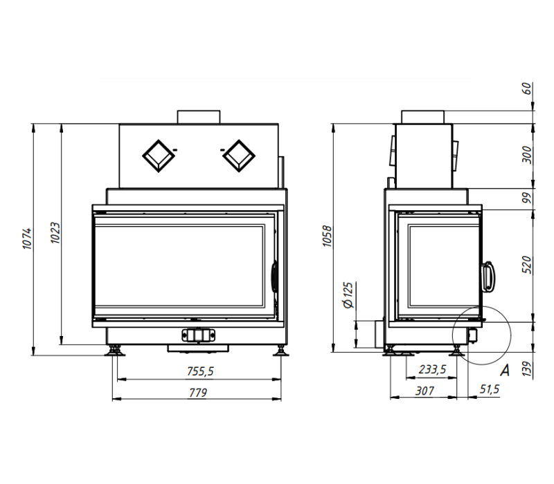 The fireplace insert is equipped with fire-resistant ceramic glass from the German manufacturer ROBAX®, which is the industry leader.