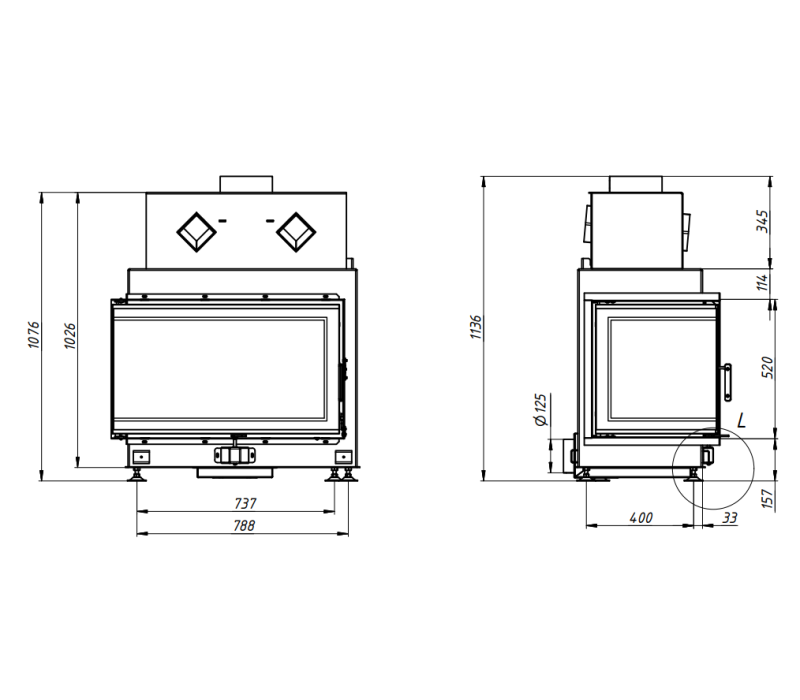 The use of German Senotherm uht 600 water-based paint eliminates odour and smoke when the fireplace insert is first lit. High-quality pigments will not change colour during operation.