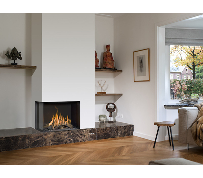 Corner Bell York - угловой камин с закрытой газовой топкой. Быстрый розжиг, легкое управление, простое обслуживание,современный дизайн и компактность