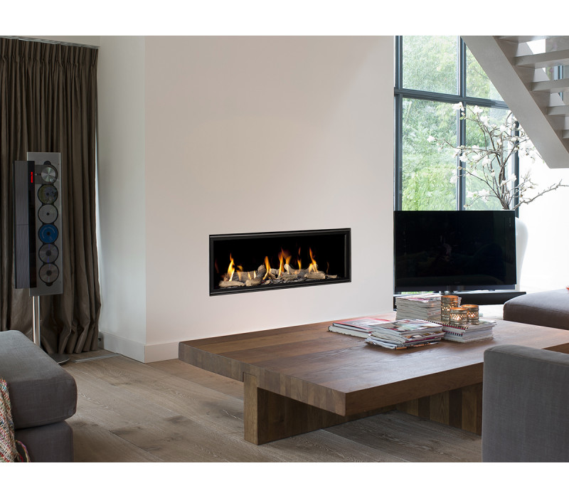 Horizon Bell Medium - камин с широкой закрытой газовой топкой. Задняя стенка декорирована полированным стеклом. Быстрый розжиг, легкое управление, простое обслуживание,современный дизайн