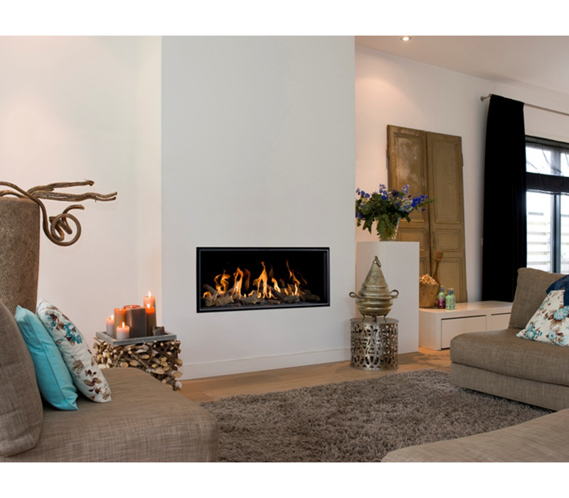 Horizon Bell Small - камин с широкой закрытой газовой топкой. Задняя стенка декорирована полированным стеклом. Быстрый розжиг, легкое управление, простое обслуживание,современный дизайн