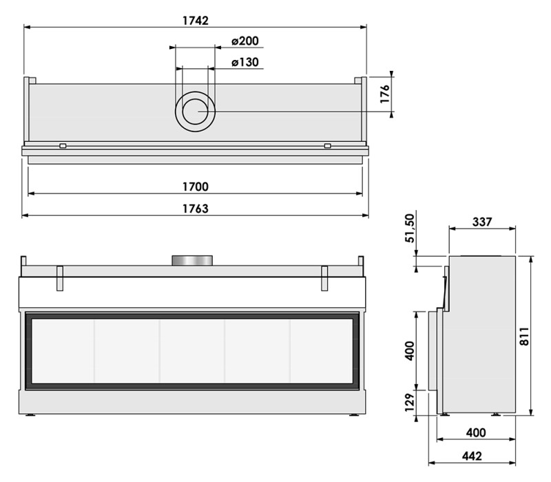Horizon Bell XXL - камин с широкой закрытой газовой топкой. Задняя стенка декорирована полированным стеклом. Быстрый розжиг, легкое управление, простое обслуживание,современный дизайн