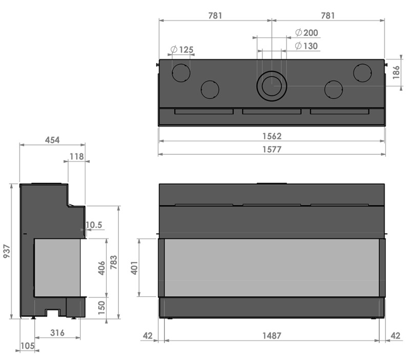 View Bell XL - камин с закрытой широкой газовой топкой с трёхсторонним остеклением. Быстрый розжиг, легкое управление, простое обслуживание и современный дизайн