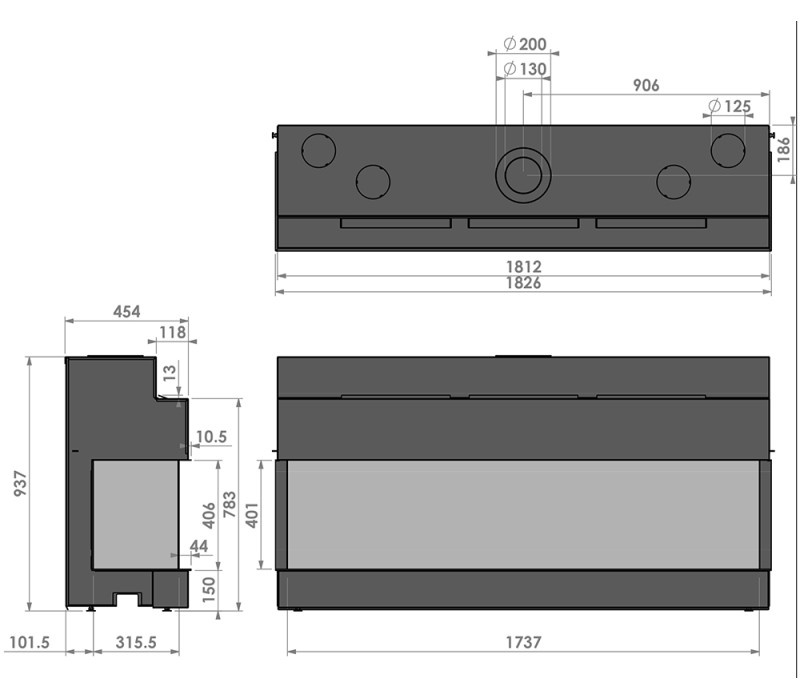 Каминная топка Brunner Architektur-Kamin Tunnel 53/121, гильотина
