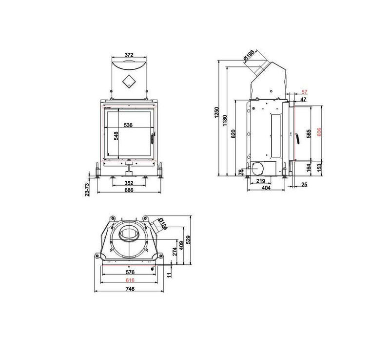 футеровка каминной топки шамотом, вес 234 кг. Brunner Kompakt-Kamin 57/55 - это камин с прекрасными тепловыми характеристиками.