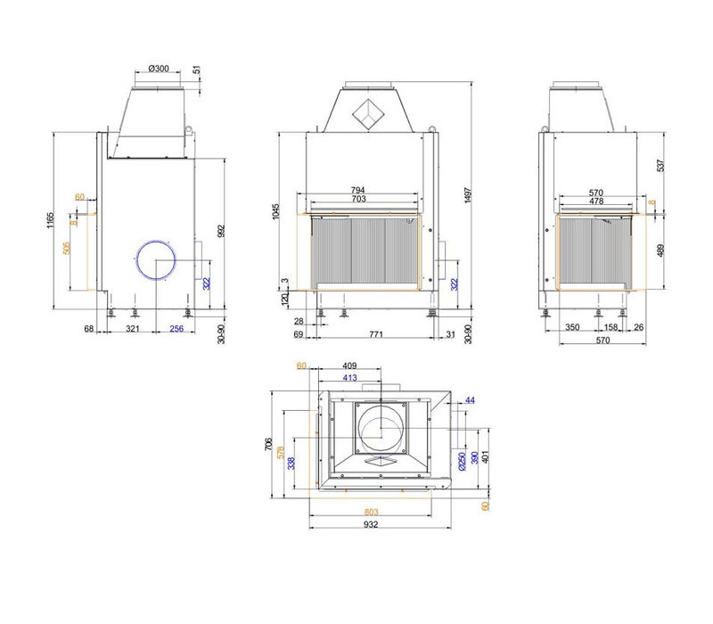 - футерування виконане з чавунних плит з можливістю замовлення додаткових панелей для моделювання індивідуального та неповторного стилю;