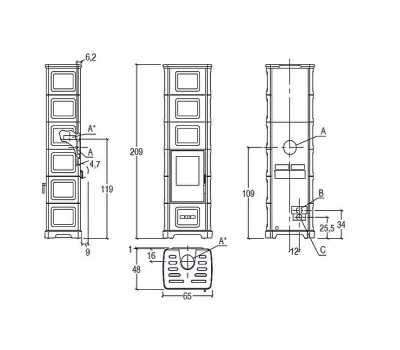 закладки дров. До 6 годин горіння печі з однієї закладки дров.