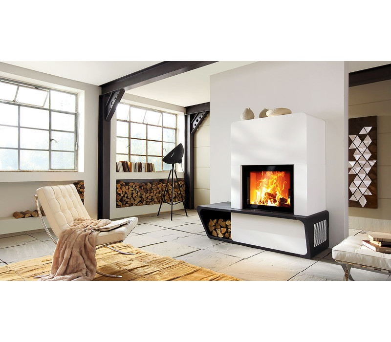 - Надежный немецкий камин Schmid Lina со стальной топкой и камерой сгорания, футерованной защитным шамотом.