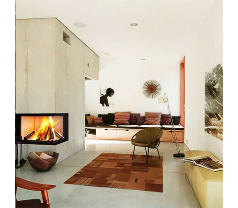стекло: угловое стекло с обзором на 90° предоставляет панорамный вид на огонь, что добавляет интерьеру уют и стиль. Стекло обработано для защиты от копоти и облегчения чистки;