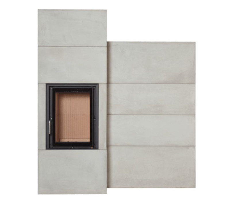 Для отделки был использован бетон, холодный тон которого хорошо подходит для оформления ультрасовременного лофта. Есть возможность оставить поверхность печи в виде современного декоративного бетона или заменить его на керамику.