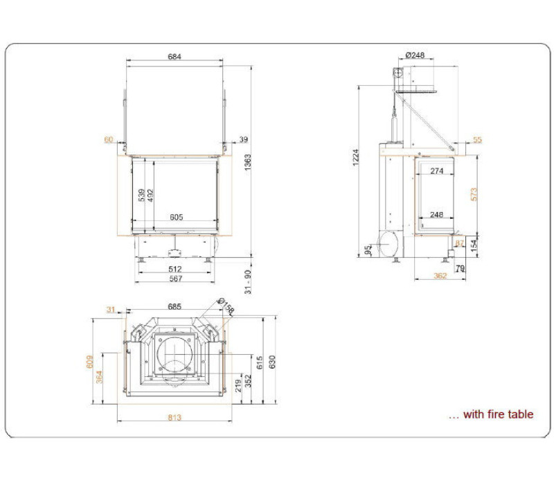- в стандартной комплектации топка оснащена черной монтажной рамкой;
