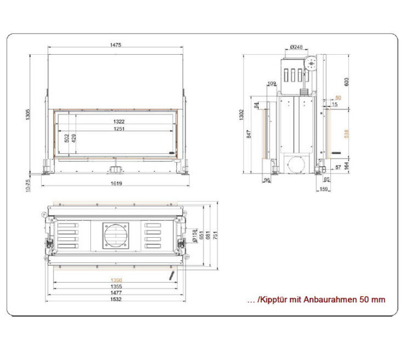 Architektur-Tunnel 53/135 (Brunner) - большая двусторонняя (двухсторонняя) топка, которая предназначена для установки в пристенные или двусторонние (туннельные) камины. Каминная вставка оборудована системой подъема дверцы с одной стороны, а с другой имеется возможность открывания только вбок, для чистки стекла и подбрасывания дров.