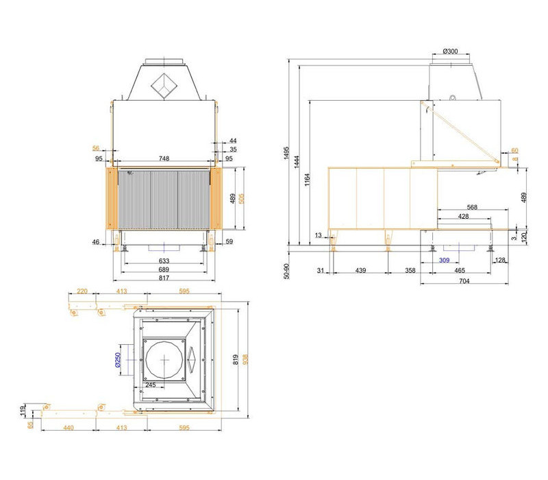 Открытая каминная топка BRUNNER Urfeuer Panorama 50/44/66/44 с трехсторонним фасадом - это неповторимое воплощение традиционного дровяного камина с использованием самых современных технологий.
