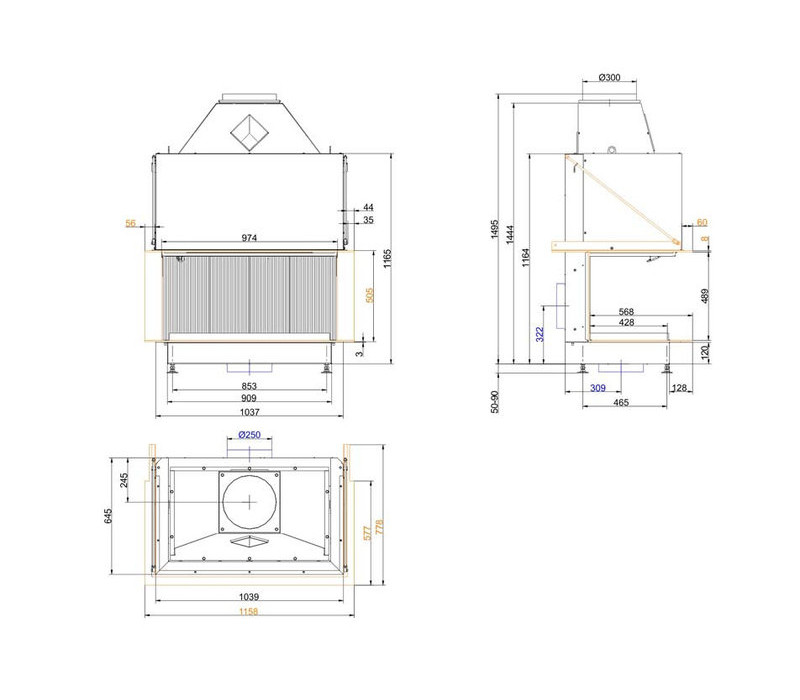 Открытая каминная топка BRUNNER Urfeuer Panorama 50/44/88/44 с трехсторонним фасадом - это неповторимое воплощение традиционного дровяного камина с использованием самых современных технологий.