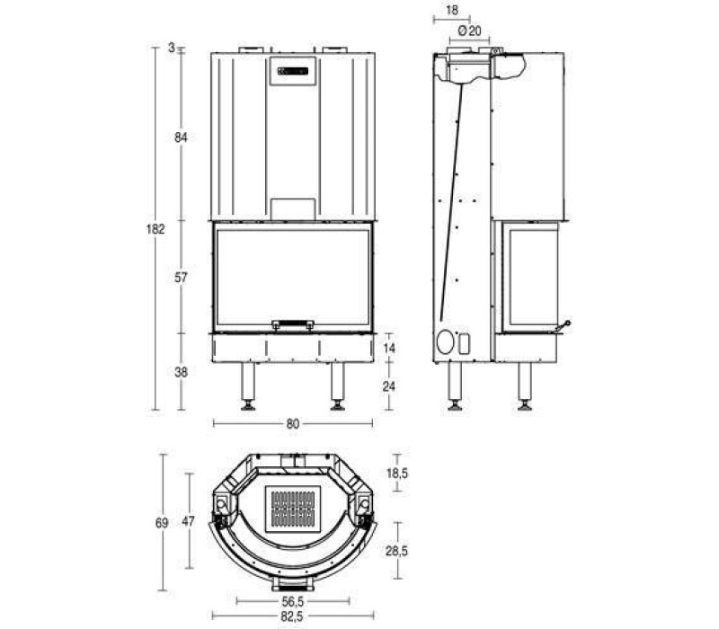 Высокая производительность.Высокая теплотворная способность материалов, из которых состоит камин выражается высокой продуктивностью работы. Высокая производительность также достигается с помощью предварительного подогрева воздуха, который попадает в камеру сгорания по специальным каналам, что обеспечивает лучшее сгорание продуктов горения.Набор для подачи наружного воздуха.Этот набор улучшает подачу первичного воздуха и оптимизирует уровень КПД. Для полноценной работы камина нужна хорошая циркуляция воздуха. Рециркуляция воздуха делится на два типа: на воздух что необходимо для сжигания, и на воздух для конвекции для охлаждения камина. Для сжигания можно использовать воздух с улицы и воздух находящийся в комнате но в том случае, когда площадь комнаты, где находится камин, не менее 30 м2 и камин используется не часто. В первом варианте воздух подается в топку камина через специальный воздушный канал который соединен с воздушным адаптером в нижней части камина. Во втором варианте воздух берется из комнаты в которой расположен камин. Использовать воздух из комнаты для работы камина не эффективно, потому что используется предварительно нагретый воздух и если в доме слабая вентиляция тогда за короткий промежуток времени, эффективность работы камина уменьшится и пребывания в комнате станет не комфортным. Помните недостаточное количество кислорода в помещении негативно влияет на здоровье. Во всех топках Piazzetta предусмотрено воздушный адаптер, для подачи воздуха с улицы.КОМПЛЕКТАЦИЯЗольник: Есть