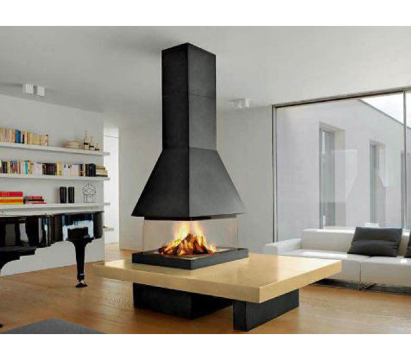 Надежность, износостойкость, прочность – характеристики всей линейки каминов от PiazzettaОсобенную конструкцию также имеет отражатель дыма. Это продукт технических разработок и результат исследований Piazzetta. Особенная форма отражателя дыма позволяет оптимизировать процесс горения и делает само пламя более привлекательным и изящным. Таким образом получаем безупречное горение, а уровень выбросов при этом сокращается, а это – ваша забота об окружающей среде.Хорошие результаты горения обеспечивает четко отрегулированный поток первичного воздуха. В процессе работы камина как бы образуется тепловая воздушная подушка вокруг керамического стекла, которая держит стекло чистым. Процесс горения также улучшает колосниковая решетка из огнеупорного материала Алукер. Она распределяет отдачу тепла, улучшает яркость пламени, а также делает респектабельным вид даже не зажженного камина.Серия италийских каминов M360 от компании PiazzettaКамин круглой формыВ камине серии M360 сочетаются высокая эффективность и нетипичные привлекательные формыВ первую очередь особенность итальянского камина M360 – его округлая форма. Дизайнеры предлагают возродить суть домашнего круглого очага прошлой эпохи, пользуясь современным стилем, технологиями и материалами. В камине не найдете привычной металлической рамки. Есть прочное, огнеупорное безопасное стекло, которое позволяет смотреть на огонь с разных углов. Таким образом, получаем панорамный вид огня, где угол обзора равен 360°. Также имеется функция электронного управления стеклянных панелей. Это значит, что у владельца есть возможность осуществлять электронное управление опусканием и подъемом обзорного стекла.Таким образом, эта безопасная и практичная технология – инновация, разработана италийскими производителями. Компания Piazzetta предлагает специальное панорамное стекло, которое оснащено уникальной системой опускания и подъема. Форма стеклянных панелей, также как и камина, полукруглая. Панели устанавливаются на две автономные электронные системы. Каждая из них управляется по отдельности. Безопасность процесса закрывания и открывания и обеспечивают специальные датчики. Панели из керамического огнеупорного стекла большого размера, но это не мешает выдерживать температуры до 750° C Конструкцию камина заключает навесной кожух конической или цилиндрической формы. Пропорции форм и размеров детально проработаны италийскими дизайнерами.Цвета навесного кожуха – черный или белый. Конструкция кожуха монтируется с использованием специального анкерного устройства для наклонного или ровного потолка (крыши). Данный набор нужен для смягчения нагрузок на конструкцию. Также оборудование позволяет установить кожух даже в комнатах с особо высоким потолком. Из других содержимых камина - глубокая и большая, круглой, но в то же время эксклюзивной формы, колосниковая решетка. Материал, из которого изготовлена решетка – Алукер – отличается своей огнеупорностью. Алукер – это также эксклюзив на рынке огнеупорных материалов, запатентованный компанией Piazzetta. Форма – не просто причуд дизайнеров, а практичный прибор, который может вместить большое количество золы. Шиберная заслонка в камине с клапаном, который регулируется вручную Стальная конструкция каминов M360 в целом прочная и износостойкая.Надежность,