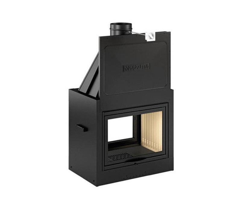 Корпус каминной топки выполнен с термоустойчивой высокоэластичной котловой стали толщиной 3 мм.Для высокой точности деталей резка производится с помощью современного лазера. Изгибание деталей происходит на современных, автоматизированных мощных станках CNC. Вырезанные и согнутые детали свариваются сварочным роботом методом MAG (автоматическая дуговая сварка металлическим электродом (проволокой) в среде защитного газа), что гарантирует получение высококачественных и эстетических швов.Для улучшения эксплуатационных характеристик компания Piazzetta покрывает корпус специально разработанной термоустойчивой эмалью. Использование эмали повышает температуру горения (за счет экранирования прямого теплового электромагнитного излучения), служит антикоррозийным барьером для стали, чем увеличивает срок эксплуатации топки. Благодаря дополнительному покрытию корпус топки не соприкасается с агрессивной средой огня.В процессе эксплуатации топка подвергается сильному температурному воздействию, происходит неравномерное увеличение деталей (температура в верху топки значительно выше чем в низу) соответственно происходит неравномерное линейное расширение деталей с большим поверхностным напряжением, и открывается возможность разгерметизации камеры сжигания со всеми негативными последствиями. Большинство производителей топок стараются использовать сталь толщиной от 4 мм, так сказать для надежности, но компания Piazzetta пошла другим путем. Проведя дорогостоящие исследования поведения стали при повышенных температурах смогли получить надежный сплав, который можно использовать даже при толщине 3 мм в камере сжигания, а дополнительное покрытие термоустойчивой эмалью защищает сталь от агрессивной среды кислот, выделяющихся в процессе горения дерева.В 1990 году проведя длительные исследование сгорания дров в каминах разработали уникальный шамотный материал для выкладки камеры сжигания Aluker. Применение шамотной футеровки в камере позволяет повысить температуру горения топлива до 30%, это происходит в следствии прямого отражения теплового электромагнитного излучения огня. Тем самым поднимая температуру в камере. Как известно, разные химические элементы имеют разную температуру сжигания. Процесс самовозгорания дерева происходит при 140°C. Чем выше температура тем больше частиц топлива сгорают что превращает газ и твердые частицы топлива в тепло, и соответственно повышается коэффициент полезного действия топки, уменьшается выброс сажи и вредных газов в атмосферу до 0,1%.Шамотный материал Aluker имеет впечатляющие характеристики он выдерживает температуру до 1400°C и остается устойчивым к механическим воздействиям.Компания Piazzetta запатентовала свою техническую разработку материал Aluker.