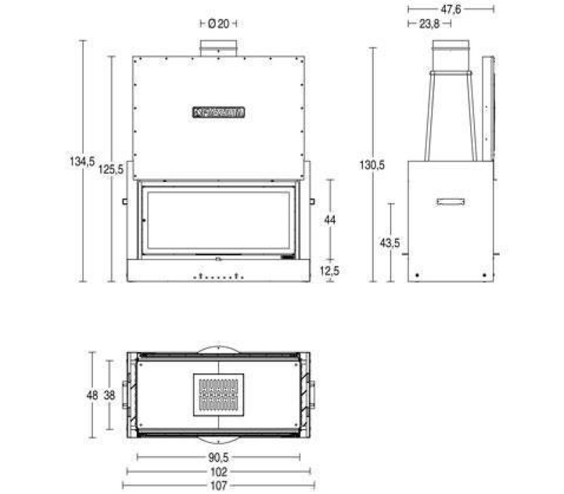 Корпус каминной топки выполнен с термоустойчивой высокоэластичной котловой стали толщиной 3 мм.Для высокой точности деталей резка производится с помощью современного лазера. Изгибание деталей происходит на современных, автоматизированных мощных станках CNC. Вырезанные и согнутые детали свариваются сварочным роботом методом MAG (автоматическая дуговая сварка металлическим электродом (проволокой) в среде защитного газа), что гарантирует получение высококачественных и эстетических швов.Для улучшения эксплуатационных характеристик компания Piazzetta покрывает корпус специально разработанной термоустойчивой эмалью. Использование эмали повышает температуру горения (за счет экранирования прямого теплового электромагнитного излучения), служит антикоррозийным барьером для стали, чем увеличивает срок эксплуатации топки. Благодаря дополнительному покрытию корпус топки не соприкасается с агрессивной средой огня.В процессе эксплуатации топка подвергается сильному температурному воздействию, происходит неравномерное увеличение деталей (температура в верху топки значительно выше чем в низу) соответственно происходит неравномерное линейное расширение деталей с большим поверхностным напряжением, и открывается возможность разгерметизации камеры сжигания со всеми негативными последствиями. Большинство производителей топок стараются использовать сталь толщиной от 4 мм, так сказать для надежности, но компания Piazzetta пошла другим путем. Проведя дорогостоящие исследования поведения стали при повышенных температурах смогли получить надежный сплав, который можно использовать даже при толщине 3 мм в камере сжигания, а дополнительное покрытие термоустойчивой эмалью защищает сталь от агрессивной среды кислот, выделяющихся в процессе горения дерева.В 1990 году проведя длительные исследование сгорания дров в каминах разработали уникальный шамотный материал для выкладки камеры сжигания Aluker. Применение шамотной футеровки в камере позволяет повысить температуру горения топлива до 30%, это происходит в следствии прямого отражения теплового электромагнитного излучения огня. Тем самым поднимая температуру в камере. Как известно, разные химические элементы имеют разную температуру сжигания. Процесс самовозгорания дерева происходит при 140°C. Чем выше температура тем больше частиц топлива сгорают что превращает газ и твердые частицы топлива в тепло, и соответственно повышается коэффициент полезного действия топки, уменьшается выброс сажи и вредных газов в атмосферу до 0,1%.Шамотный материал Aluker будучи абсолютно экологичным имеет впечатляющие характеристики он выдерживает температуру до 1400°C и остается устойчивым к механическим воздействиям.Компания Piazzetta запатентовала свою техническую разработку материал Aluker.