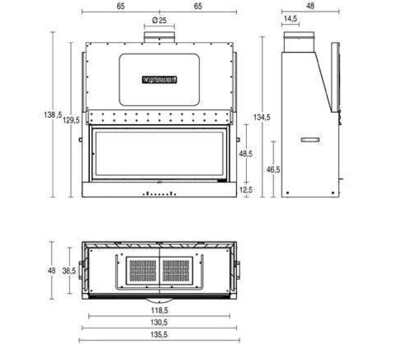 Топка камина оборудована системой поддержки сгорания дымовых газов. Вторичное горение стимулируется фиксированной