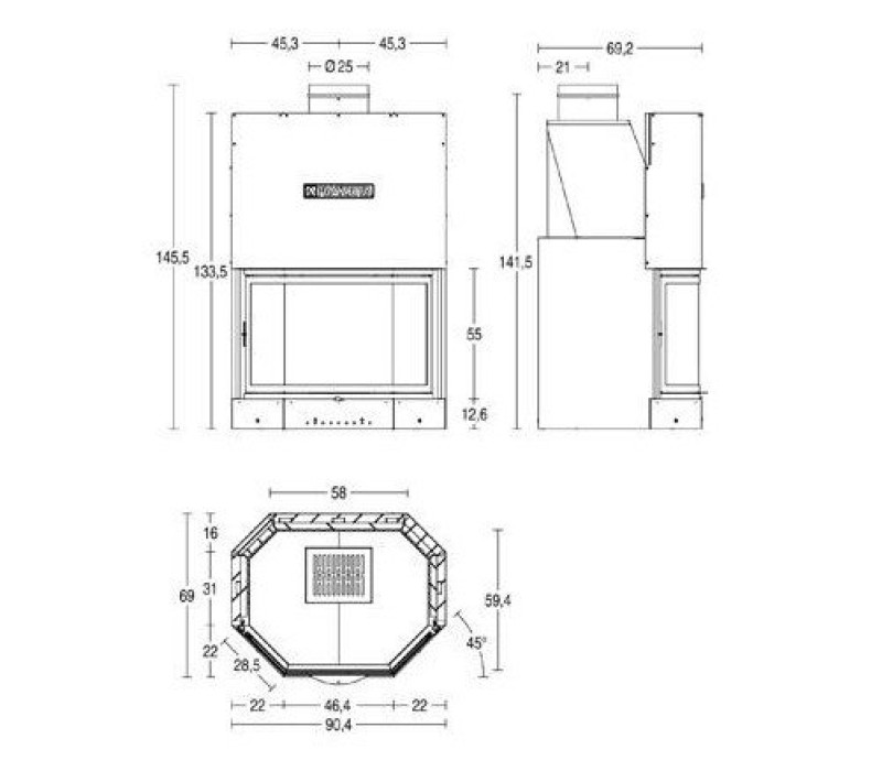 Корпус каминной топки выполнен с термоустойчивой высокоэластичной котловой стали толщиной 3мм.Для высокой точности деталей резка производится с помощью современного лазера. Изгибание деталей происходит на современных, автоматизированных мощных станках CNC. Вырезанные и согнутые детали свариваются сварочным роботом методом MAG (автоматическая дуговая сварка металлическим электродом (проволокой) в среде защитного газа), что гарантирует получение высококачественных и эстетических швов.Для улучшения эксплуатационных характеристик компания Piazzetta покрывает корпус специально разработаной термоустойчивой эмалью. Использование эмали повышает температуру горения (за счет экранирования прямого теплового электромагнитного излучения), служит антикоррозийным барьером для стали, чем увеличивает срок эксплуатации топки. Благодаря дополнительному покрытию корпус топки не соприкасается с агрессивной средой огня.В процессе эксплуатации топка подвергается сильному температурному воздействию, происходит неравномерное увеличение деталей (температура в верху топки значительно выше чем в низу) соответственно происходит неравномерное линейное расширение деталей с большим поверхностным напряжением, и открывается возможность разгерметизации камеры сжигания со всеми негативными последствиями. Большинство производителей топок стараются использовать сталь толщиной от 4 мм, так сказать для надежности, но компания Piazzetta пошла другим путем. Проведя дорогостоящие исследования поведения стали при повышенных температурах смогли получить надежный сплав, который можно использовать даже при толщине 3 мм в камере сжигания, а дополнительное покрытие термоустойчивой эмалью защищает сталь от агрессивной среды кислот, выделяющихся в процессе горения дерева. В 1990 году проведя длительные исследование сгорания дров в каминах разработали уникальный шамотный материал для выкладки камеры сжигания Aluker.