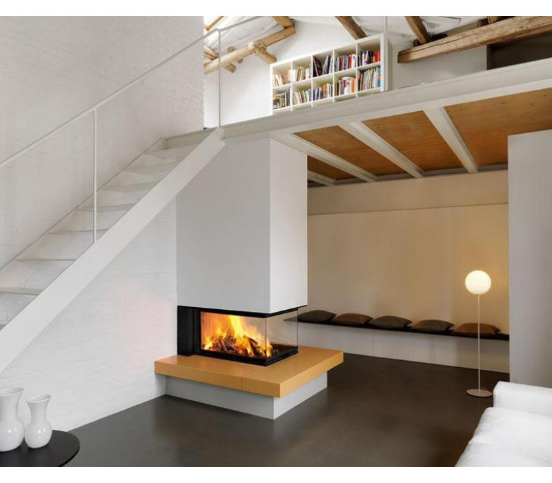 Дверцы каминной топки сделаны с цельного стального профиля. В который вмонтирована жаропрочная стеклокерамика SCHOTT ROBAX® которая, благодаря очень низкому коэффициенту теплового расширения выдерживает температуру до 760°C. По данным компании стеклокерамика SCHOTT была вмонтирована в 35 миллионов каминов. Стеклокерамика отражает в камеру сжигания до 35% тепла тем самым повышает температуру сгорания и дает возможность наслаждаться видом огня с близкого расстояния в комфортных условиях. Для сохранения герметичности камеры в профиль дверц вложен специальный графитовый уплотнитель. Система дотяжки двери позволяет сохранять герметичность камина на протяжении многих лет. Топка укомплектована надежной системой поднятия двери вверх. Практически бесшумна, для плавности работы оснащена амортизаторами. Простая система состоит с троса, шкива и противовеса гарантирует безупречную многогодовую работу. Гильотина облегчает процесс загрузки топлива в камеру, открывает возможность пользоваться камином для приготовления пищи как гриля. Проконсультировавшись у наших менеджеров можно подобрать дополнительные аксессуары предназначенные для использования камина как гриля. Для любителей готовки и кулинарии, к топке предлагается набор COOKING PRO для приготовления пищи на решетке. В качестве опции топки серии MA сразу могут быть оборудованными практичным набором для готовки. В набор входит подставка для дров, платы из жароустойчивого материала Алукер и стальная решетка для гриля. Особенностью конструкции является дно топки выполненное из высокоэластичного первичного чугуна . В нижней части камеры сжигания расположен достаточно вместимый вынимаемый зольник, накрытый съемной чугунной колосниковой решеткой. Подача первичного воздуха в камеру сжигания происходит через зольник, интенсивность горения регулируется с помощью ручки выведеной на нижней части топкию. Четырехсторонний обдув стекла вторичным воздухом создает воздушный барьер, который препятствует оседанию сажи и дыма на стекло в процессе работы топки. Таким образом стекло остается чистым на протяжении всех фаз горения. На внешней стороне дна топки предусмотрено отверстие для подсоединения канала подачи свежего воздуха с улицы. Управление интенсивностью горения производится: - управлением шиберной задвижкой для дымохода (увеличиваем или уменьшаем тягу дымохода) - управление подачи воздуха в камеру сжигания (ручка находится в нижней части топки)КОМПЛЕКТАЦИЯЗольник: ЕстьИнструкция по эксплуатации: Есть