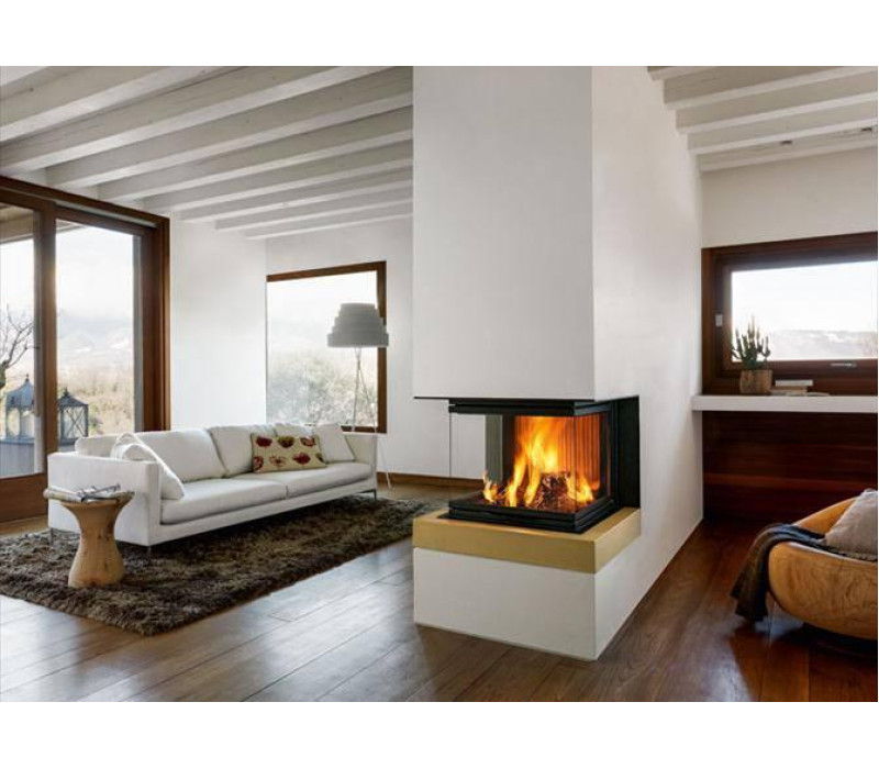 Трёхсторонняя каминная топка Piazzetta MA 274 SL от итальянского производителя каминов компании Piazzetta. Корпус камина изготовлен из высококачественного термостойкого чугуна, кожух и дверная рама изготовлены из термостойкой легированной стали. Камера сгорания каминной топки обложена толстыми керамическими плитами. Топка Piazzetta 274 имеет широкоформатное трехстороннее стекло которое открывает великолепный вид на огонь. Двери каминной топки открываются вертикально это позволяет использовать камин как открытый чтобы сполна наслаждаться красотой горящего огня. Стекло каминной топки MA 274 SL жаростойкое от компании SCHOTT ROBAX® и выдерживает температуру до 750 ° С, камин полностью безопасен. Каминная топка Piazzetta MA 274 SL конвекционного типа, обогрев помещения осуществляется путем естественной конвекции и с помощью теплового излучения. Также производителем предусмотрено использование принудительной системы охлаждения камина системы Multifuoco. Данная система отбирает теплый воздух и транспортирует его воздушными каналами по помещению. Уникальность данной системы заключается в том, что каналы для транспортировки теплого воздуха находятся в полу и нагретый воздух подается с пола, таким образом помещение нагревается равномерно. Топка имеет регулируемый шибер и удобную систему контроля подачи воздуха это помоги выбрать нужный режим работы.Для удобства уборки дверь каминной топки открывается в сторону.