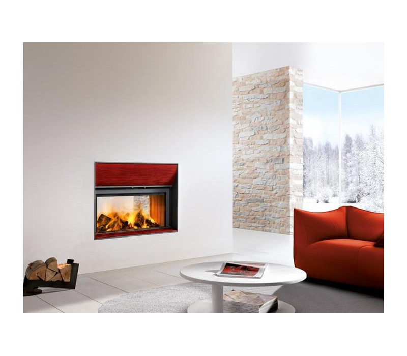 Дверцы каминной топки сделаны с цельного стального профиля. В который вмонтирована жаропрочная стеклокерамика SCHOTT ROBAX® которая, благодаря очень низкому коэффициенту теплового расширения выдерживает температуру до 760°C. По данным компании стеклокерамика SCHOTT была вмонтирована в 35 миллионов каминов. Стеклокерамика отражает в камеру сжигания до 35% тепла тем самым повышает температуру сгорания и дает возможность наслаждаться видом огня с близкого расстояния в комфортных условиях. Для сохранения герметичности камеры в профиль дверц вложен специальный графитовый уплотнитель. Система дотяжки двери позволяет сохранять герметичность камина на протяжении многих лет. Топка укомплектована надежной системой поднятия двери вверх. Практически бесшумна, для плавности работы оснащена амортизаторами. Простая система состоит с троса, шкива и противовеса гарантирует безупречную многогодовую работу. Гильотина облегчает процесс загрузки топлива в камеру, открывает возможность пользоваться камином для приготовления пищи как гриля. Проконсультировавшись у наших менеджеров можно подобрать дополнительные аксессуары предназначенные для использования камина как гриля. Для любителей готовки и кулинарии, к топке предлагается набор COOKING PRO для приготовления пищи на решетке. В качестве опции топки серии MA сразу могут быть оборудованными практичным набором для готовки. В набор входит подставка для дров, платы из жароустойчивого материала Алукер и стальная решетка для гриля. Особенностью конструкции является дно топки выполненное из высокоэластичного первичного чугуна . В нижней части камеры сжигания расположен достаточно вместимый вынимаемый зольник, накрытый съемной чугунной колосниковой решеткой. Подача первичного воздуха в камеру сжигания происходит через зольник, интенсивность горения регулируется с помощью ручки выведеной на нижней части топкию. Четырехсторонний обдув стекла вторичным воздухом создает воздушный барьер, который препятствует оседанию сажи и дыма на стекло в процессе работы топки. Таким образом стекло остается чистым на протяжении всех фаз горения. На внешней стороне дна топки предусмотрено отверстие для подсоединения канала подачи свежего воздуха с улицы. Управление интенсивностью горения производится: - управлением шиберной задвижкой для дымохода (увеличиваем или уменьшаем тягу дымохода) - управление подачи воздуха в камеру сжигания (ручка находится в нижней части топки)Топки имеют многофункциональную систему Multifioco, которая позволяет теплу ровно распределяться по комнате от пола до потолка, даже в смежные комнаты. Длина канала до 12 метров. Также, на топку можно установить и систему Multifioco+ комплекта системы, что позволит управлять ею с одного пульта.