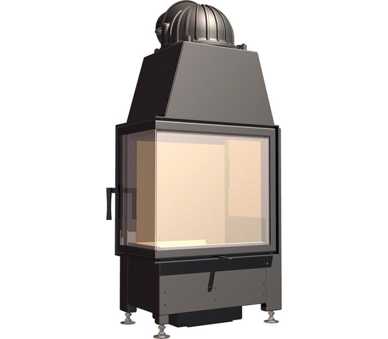 Каминная топка с угловым стеклом, открытие боковое (левосторонняя), цельное стекло, фронт 550 мм, боковая сторона стекла 340 мм,