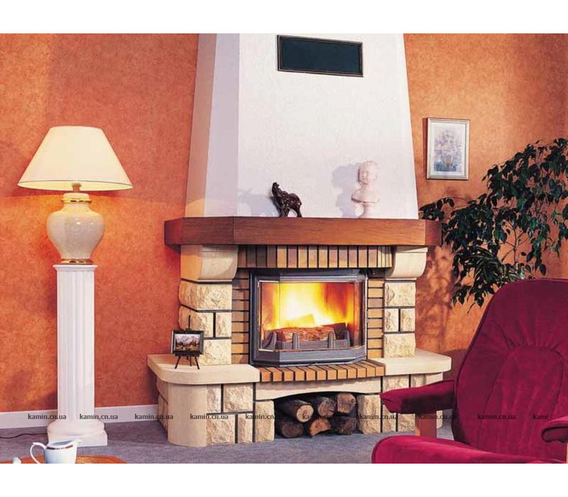 Топка имеет панорамное стекло, открывает прекрасный вид на огонь, заламывая изображение огня. Также топка имеет запатентованную систему открывания дверей, эта система предотвращает случайное попадание дыма в помещение, система открывания дверей связана с шибером. Толщина стенки камина составляет 15 мм это позволяет топке больше накапливать тепло и дольше его отдавать. Такая толщина чугуна обеспечивает более эффективную работу камина и увеличивает его период эксплуатации. Топка имеет чугунный дефлектор, который увеличивает путь дымовых газов и увеличивает теплоотдачу. Высокий дымосборник позволяет максимально отобрать тепло у продуктов горения. Встроенный шибер облегчает процесс контроля над горением и уменьшает потери тепла.