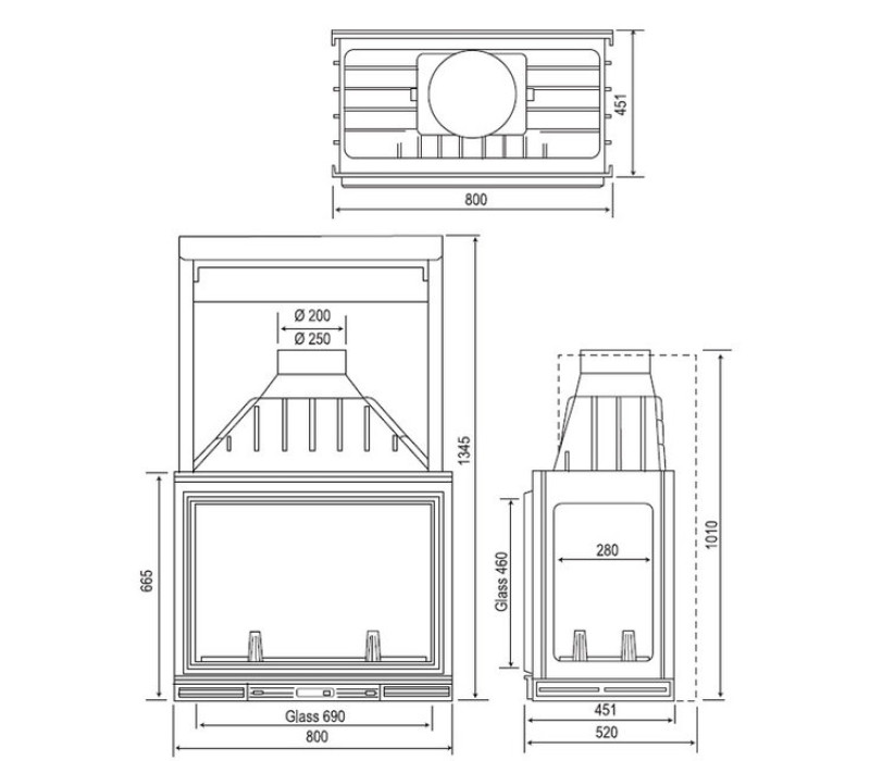 · - F0801 Топка MULTIVISION 8000 с открытием двери в сторону + окно справа