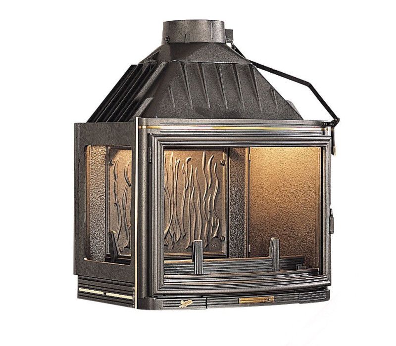 Камин SEGUIN Panoramic с боковым стеклом - чугунный камин с топкой французского производителя. Камин имеет панорамное стекло и боковое открывание дверцы.