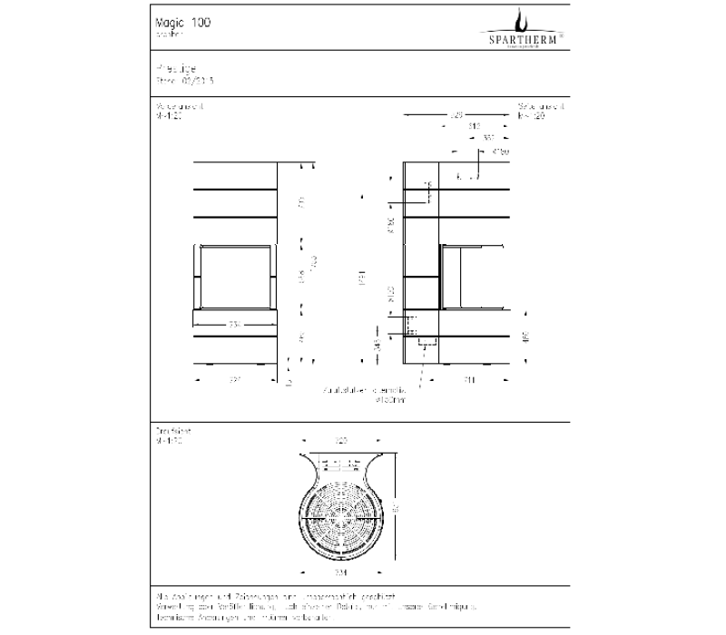 Spartherm Magic классическая панорамная обзорная каминная топка дизайнерской серии Magic немецкого завода Spartherm. Дверца с большим керамическим радиальным стеклом, открывается вбок. Возможны два варианта открывания дверцы: вручную и с помощью электромотора. Регулируемые по высоте ножки, зольник, двойное сгорание.
