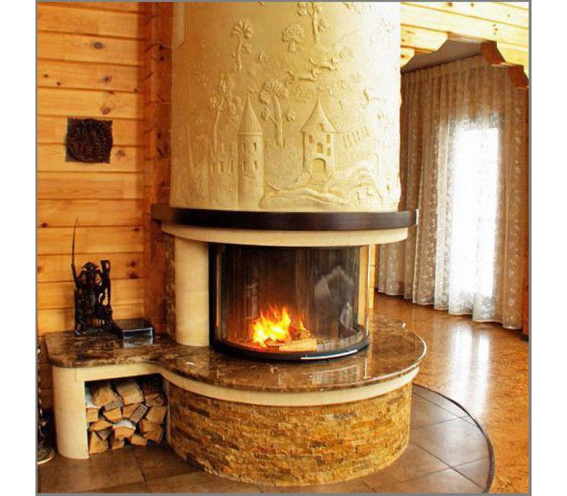 - фасад имеет округлую цилиндрическую форму, дверца почти одинаковая по высоте и ширине. Задняя и боковые стенки топки тоже округлой формы;