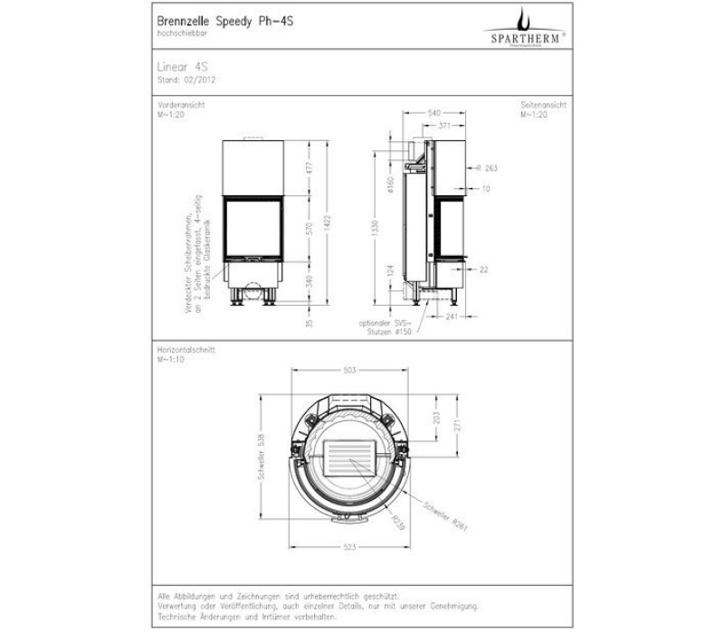 Каминная топка Speedy Ph от компании SPARTHERM относится к модельному ряду Speedy. В этой серии представлены округлые и призматические топки. Каминная топка Speedy Ph–типичный ее представитель. Топка имеет цилиндрическую форму со всех сторон. Стекло и дверца полукруглые. Можно встроить топку в компактный камин различного дизайна, такое решение будет еще более привлекательным. Благодаря стеклу в форме полукруга пламя во время горения просматривается практически с любой точки помещения, Несмотря на небольшие размеры каминной топки Speedy Ph, ее технические характеристики достаточно высоки.