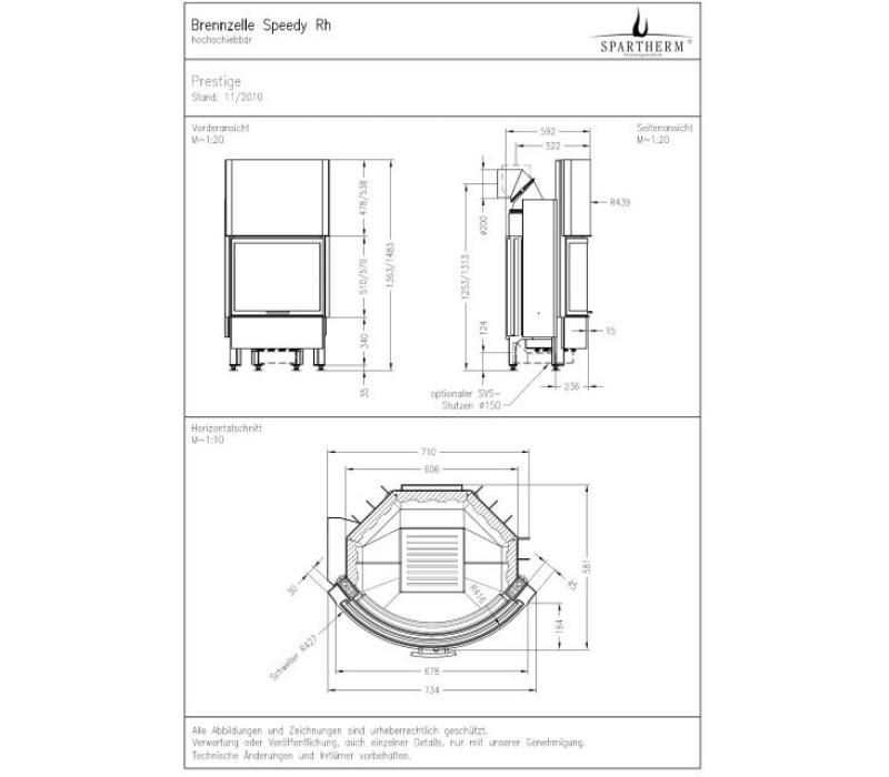 Каминная топка Speedy Rh производства компании SPARTHERM относится к модельному ряду Speedy. Отличается довольно широким панорамным стеклом округлой формы. Элегантная и простая форма каминной топки Speedy Rh украсит камин различного дизайна, дополнит любой стиль гостиной от современного до классического. Топка сможет обогреть помещение в 100 кв.м., ее номинальная мощность 9 кВт, а диапазон колеблется от 7 до 11,5 кВт. Многое зависит от качества (сухости) и пород древесины.