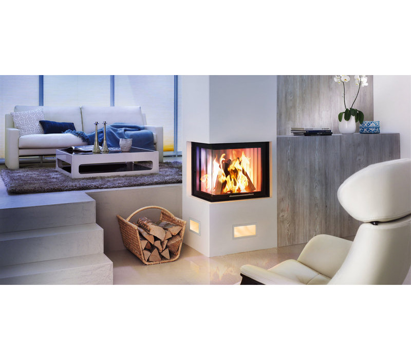Если Вы хотите увеличить обзор горящего пламени камина - выбирайте угловые каминные топки. Компания Spartherm в своей самой популярной серии Varia выпускает ряд угловых топок с плоским, как правосторонним, так и левосторонним стеклом. Угловая топка дает возможность обозревать через боковое и фронтальное стекло процесс горения и наслаждаться картиной настоящего пламени с разных ракурсов комнаты. Левосторонняя топка Varia 2L – предназначена для небольших помещений, так как отличается компактными размерами и имеет среднюю номинальную мощность. Буквы RLU в названии означают, что данные топки могут работать без использования воздуха в помещении.