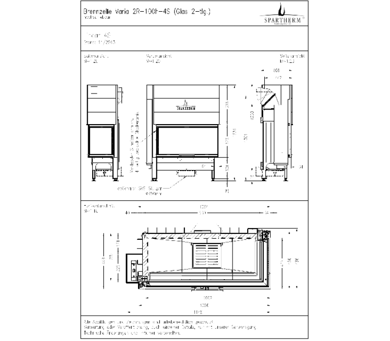 Каминные топки Spartherm Varia2L-1000h и Varia2R-100h – левосторонняя и правосторонняя угловые топки соответственно. Параметр 100 h указывает на ширину передней дверки, которая составляет 1002 мм. Топка Spartherm Varia2L-1000h мощная и вполне может обогревать помещение размером 141 кв.м. со средней высотой потолка. Диапазон мощности этой топки 7,7-14,3 квт, диаметр выходного патрубка дымохода составляет – 250 мм. Это необходимо учитывать для правильного монтажа топки и подключения её к дымоходу. Вариация Linear 4S предусматривает различное обрамление дверцы.