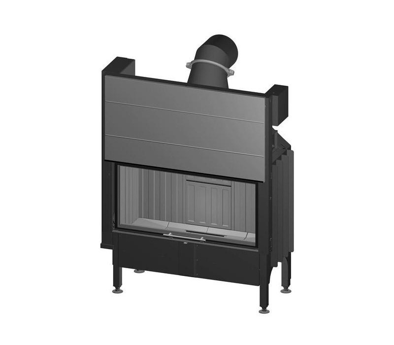 Данная каминная топка изготовлена из стали толщиной 4-5 мм с антикоррозийным покрытием. Дверца с широким панорамным керамическим стеклом, которая открывается вбок и вверх. Топка футерована шамотными плитами цвета слоновой кости которые накапливают тепло во время работы топки, и некоторое время излучает его после окончания процесса горения.