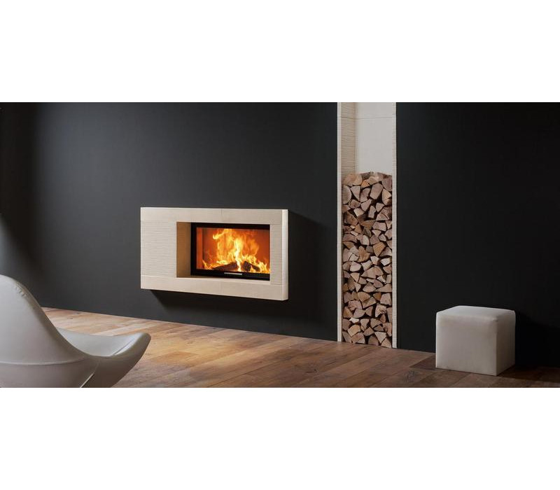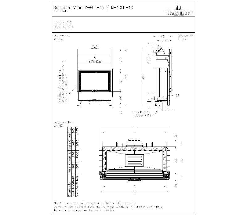 Spartherm Varia M-80h-4S - это стальная каминная топка (толщина жаропрочной стали составляет 4-5 мм) с подъемным механизмом двери, в данной топке применяется функция "чистое стекло", которая реализована по средствам направления потоков чистого воздуха на внутреннюю часть топочной дверцы.