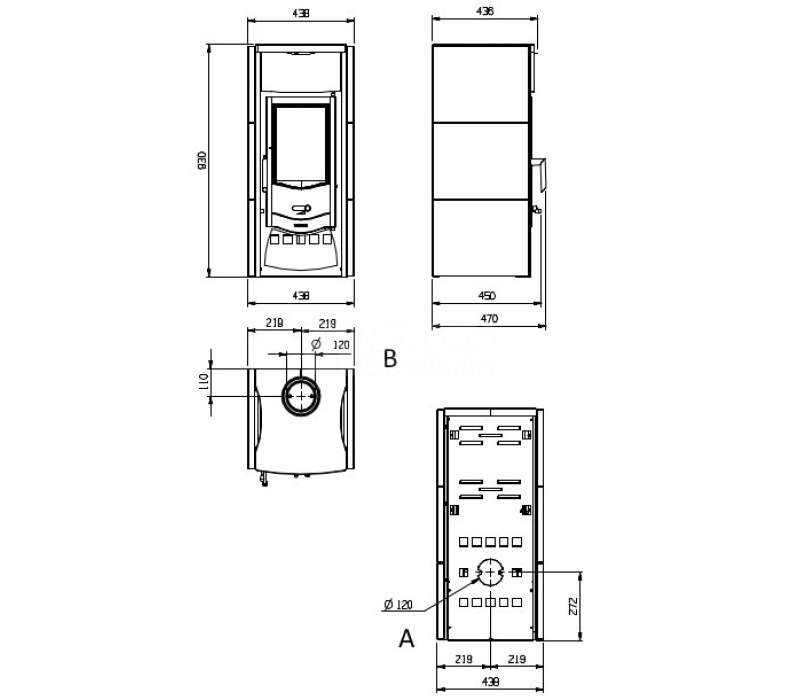 Печь - каминофен Asia итальянской фирмы La Nordica с вертикальным видом на пламя имеет номинальную мощность 6 кВт. и способен отопить до 170 куб.м. Топочная часть выполнена из чугуна. Внешняя отделка - теплоаккумулирующие пластины изготовленые из тальк
