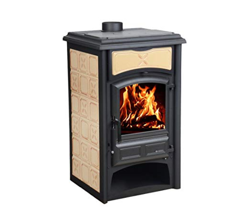 Печь - каминофен Gisella итальянской фирмы La Nordica с вертикальным видом на пламя имеет номинальную мощность 8 кВт. и способен отопить до 230 куб.м. Топочная часть выполнена из чугуна. Внешняя отделка изготовлена из майолики ручной работы белого или к