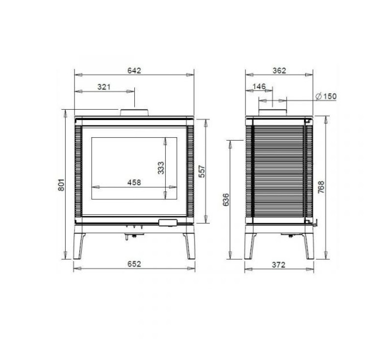 В данной модели есть функция вторичного дожига, что приводит к полному сгоранию топлива, повышает экологические характеристики печи, сохраняет максимум тепла в помещении. Поворотная ручка плотно прижимает дверцу к корпусу, предотвращая неконтролируемый доступ кислорода и не давая дыму и запаху проникнуть в помещение. Данная модель имеет два варианта подключения - верхний и с задней стенки. Также предусмотрены две регулируемые подачи кислорода в топочную камеру. Стекло в дверце печи изготовлено из высококачественной стеклокерамики. Благодаря системе очистки "обдув потоком воздуха" стекло печи остается чистым и прозрачным.