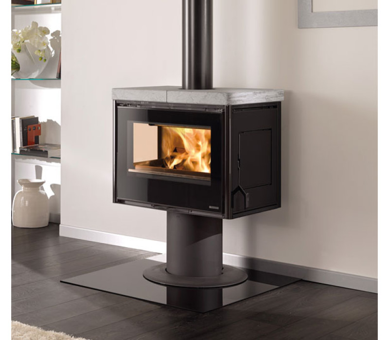 Каминофен Astrid La Nordica - модель линейки TOP DESIGN с боковым и фронтальным стеклом, конструкция установлена на вращающейся основе. Верхняя плита камина выполнена из натурального камня талькохлорид. Каминофен оснащен боковыми дверцами для удобства загрузки дров. La Nordica Astrid сделан из чугуна - материала, благодаря которому каминофен защищен от действия внешних факторов и, соответственно, имеет длинный срок эксплуатации. Конструкция печи полностью рассчитана на эффективное использование топлива: топка закрытого типа, излучения тепла из трех сторон. При этом КПД складывает 78% и является убедительным показателем для характеристики отопительного прибора. Каминофен La Nordica Astrid функционирует на твердом топливе - дровах, с максимальным размером поленьев в 32 см, перед использованием для улучшения горения проводят просушку дров.