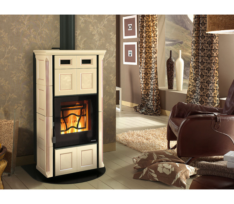 Cleo Combi Vogue – каминофены, которые сочетают в себе все лучшие качества: современные передовые технологии и элегантный дизайн. Каминофены Cleo Combi VOGUE функционируют не только на древесине, но и на гранулированных пеллетах (древесные гранулы), что и подчеркивает в данной печи универсальность. Благодаря современным технологиям каминофены Cleo Combi VOGUE работают практически бесшумно. Данные печи изготавливаются из жаропрочных материалов: стали, чугуна, майолики. Снаружи печь отделана майоликой, корпус изготовлен из чугуна. Максимальная температура, которую выдерживают керамические детали достигает 750 C.