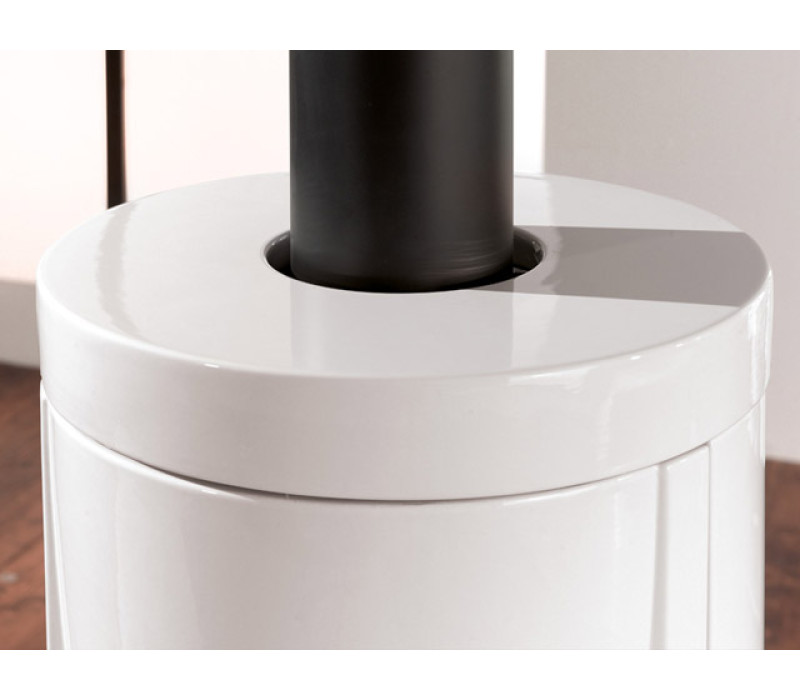 Изогнутые дверцы топки сделаны из керамического стекла. Огнеупорное стекло способно выдерживать температуру в 750 °C. Благодаря системе очистки стекло печи сохранит чистоту долгое время. Частицы, которые остаются после сгорания топлива, перерабатываются в камере вторичного дожига, благодаря чему печь является экологически чистой для окружающей среды. В верхней части данной модели имеется отверстие для подключения дымохода. Каминофен La Nordica Fortuna Bifacciale представлен в двух цветах: белый и бордовый.