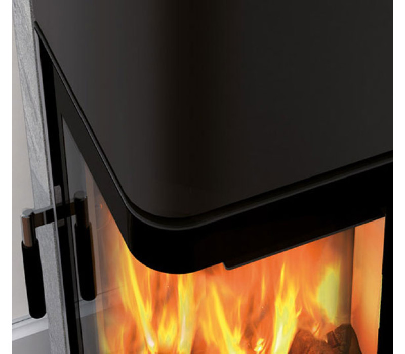 На дверце топки используется стеклокерамика. Стеклокерамика производиться в Японии под маркой Neoceram N-O. В результате особого процесса вальцовки и кристаллизации стекло приобретает высокий уровень жаропрочности. Такое стекло позволяет выдерживать температуры до 750°. Благодаря способу "обдув потоком воздуха" стекло остается чистым длительное время.
