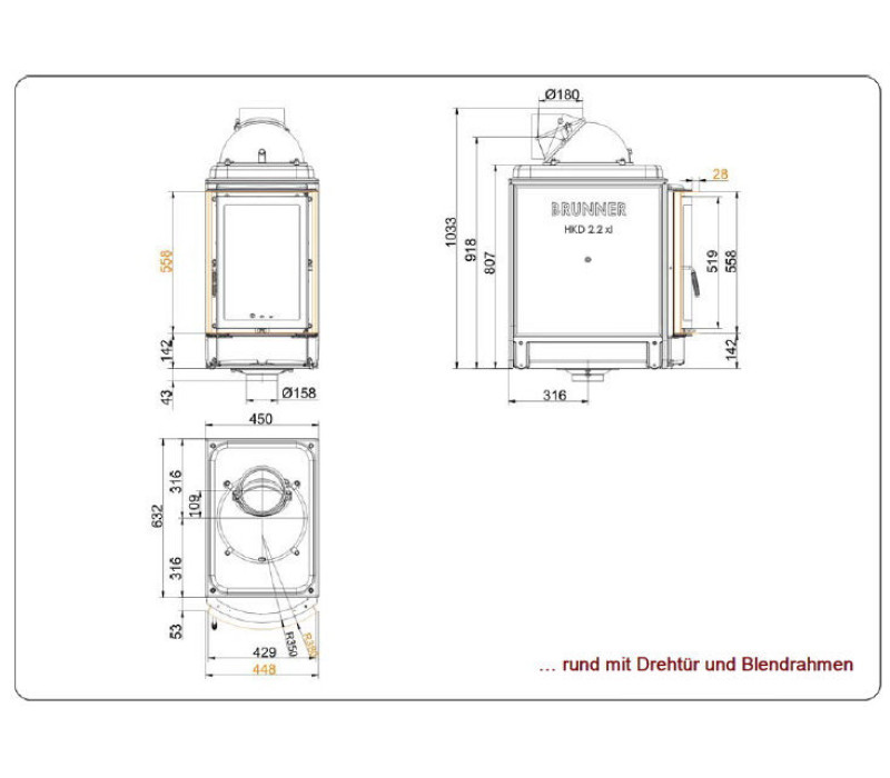 Топка HKD 2.2 разработана на основе классических печей. В результате к достоинствам классики прибавились преимущества современного взгляда на то, какой должна быть каминная печь. Материалом для неё служит термостойкая нержавеющая сталь с особыми легирующ